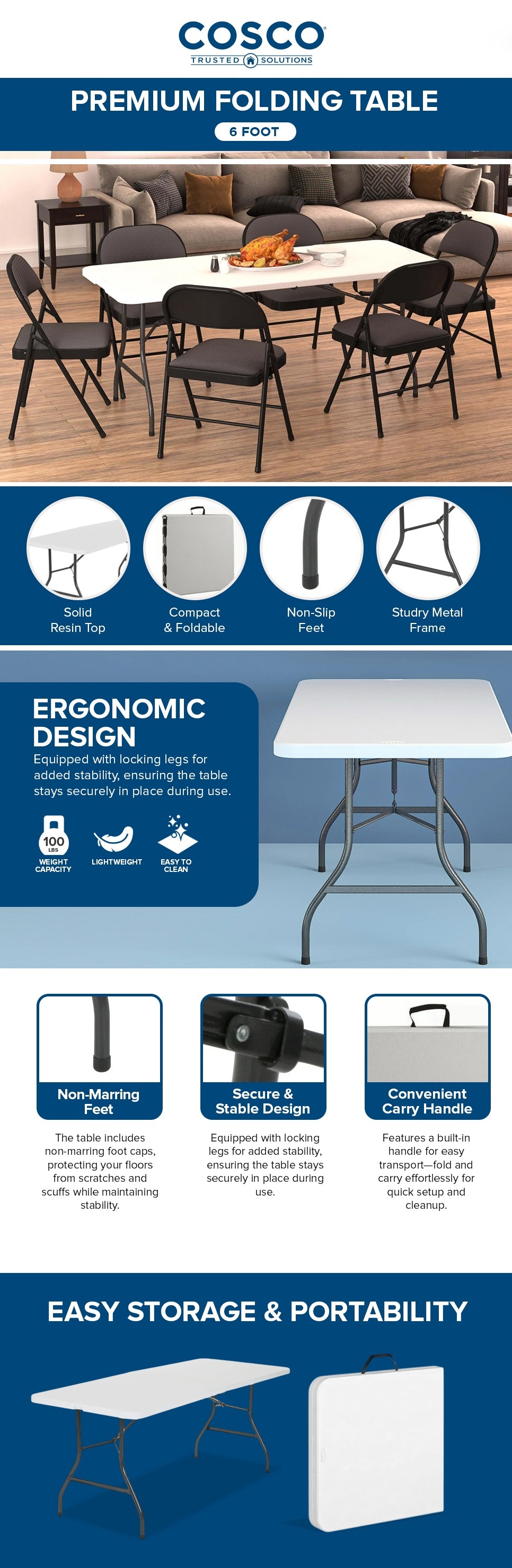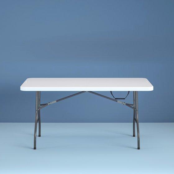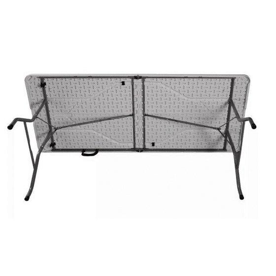 - Heavy duty table folds in the center