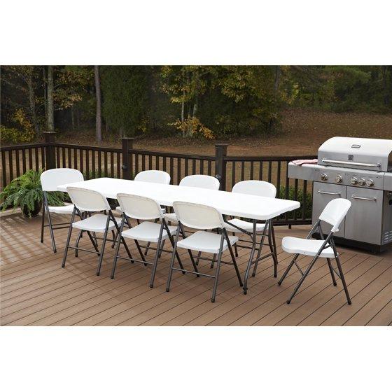 The Cosco 8' Centerfold Table is a practical and attractive item to have on hand. This high-quality table caters to most any occasion. Dress it up for the holidays or bring it outside for a barbecue. It also works for hobbies such as painting and crafts. Use is for yourself or make it a play station for kids. This Centerfold Table features a waterproof top that resist spills and weather. It is easy to clean up so it is worry-free. This versatile piece saves space and time. The legs fold in and a center folding feature makes transport and storage virtually effortless. Just fold it up and bring it with you. When you are finished, it folds away out of sight in your basement, garage or closet. This 8' white table provides additional seating at both ends of table, so there is room for everyone to sit and enjoy. It has a heavy duty strong steel frame, steel legs and a low maintenance.