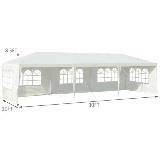 - Large Inner Space: Our 10' x 30'outdoor tent has spacious inner space for you and your friends to have activities. It can hold many people for dining, party or wedding together. Regardless of rain or sunshine, it will probably not affect outdoor activities if you have such a canopy. What's more, the canopy can also be a temporary garage for your car, tools, patio furniture.