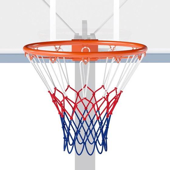 Constructed of a heavy duty metal frame, this basketball rim is designed to withstand vigorous play. Double springs provide an excellent bounce-back during shots, enhancing your play whether you are practicing alone or competing in spirited game sessions. Crafted for durability, our basketball rim includes an all-weather net that resists wear and tear. Installation is straightforward, and the universal design of the rim allows it to fit on various basketball hoops, walls or doors. Upgrade or replace your old basketball rim with this rim to keep your hoops up to standard.