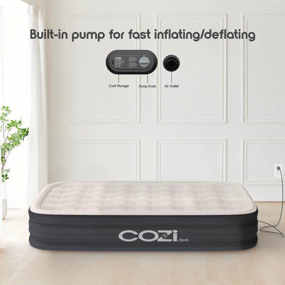 Cozi by Tzumi 13” Air Mattress, Inflatable Bed with Built-In Pump for Camping, Home, & Travel, King Size