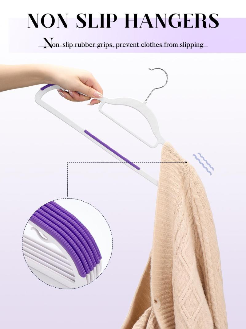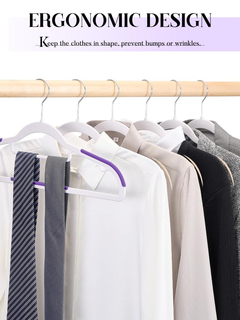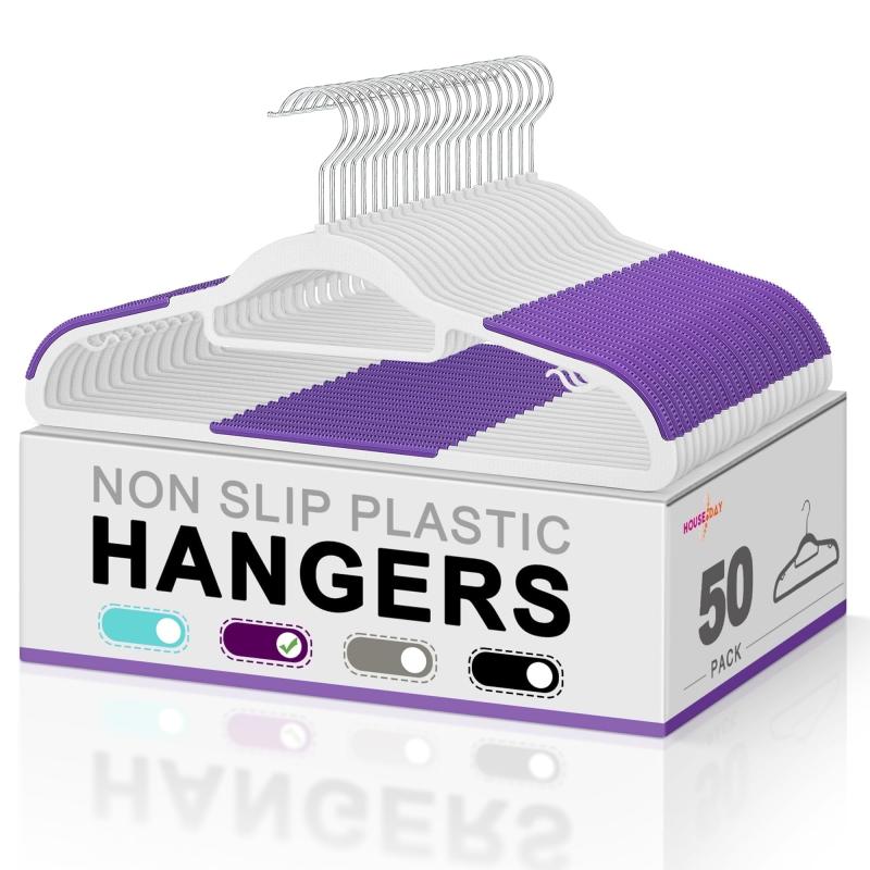 cozymood 50 Pack Coat Hangers Heavy-Duty 360° Swivel Hook Plastic Hangers with Non-Slip Design Space-Saving Light, Purple