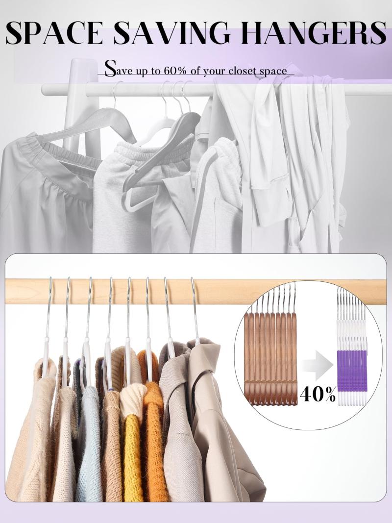 - Space Saving Hangers For Clothes: The sleek of these slim hangers optimizes your wardrobe space, enabling you to hang more clothes in the same area. The 360-degree rotating hook of the dorm hangers ensures easy access to your desired garment without the need to remove the adult hangers, making them an excellent solution for maximizing storage efficiency.