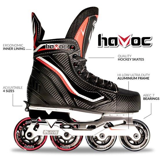 Crazy Skates Havoc Inline Skates - High Performance Size Adjustable Roller Hockey Skates for Men, Women, Boys and Girls