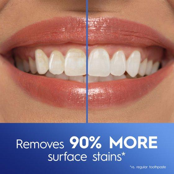 - Removes 90% more surface stains* *Vs. regular toothpaste