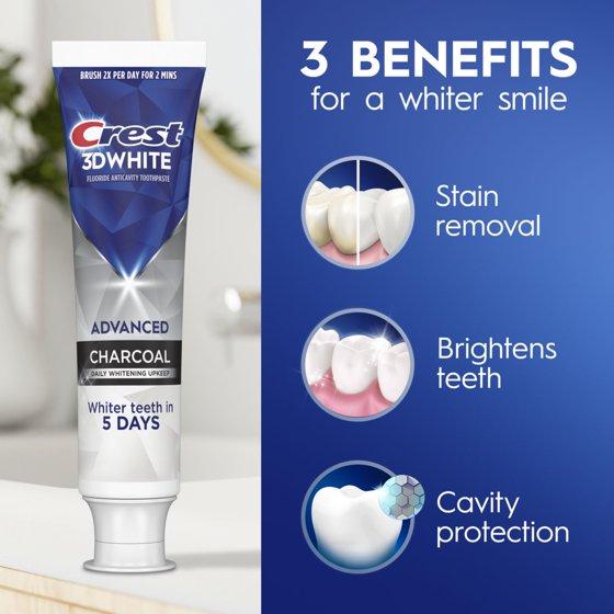 - You will receive two (2) 3.3 oz tubes of Crest 3DWhite Advanced Charcoal Toothpaste