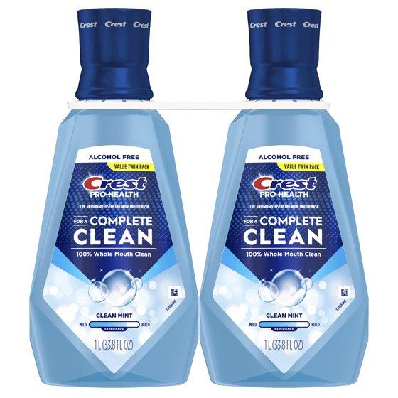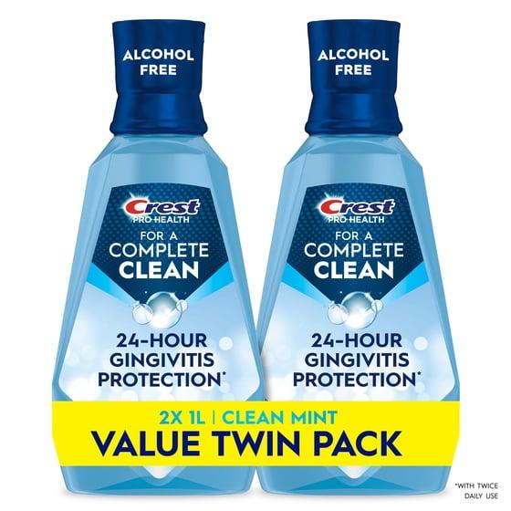 Crest Mouthwash Pro Health Complete Clean, Alcohol Free, Clean Mint, 1 L, 2 Pack