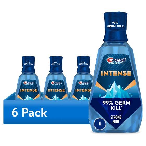 (6 pack) Crest Pro-Health Intense Mouthwash/Mouth Rinse, Clean Mint - 1 L , 99% Germ Kill