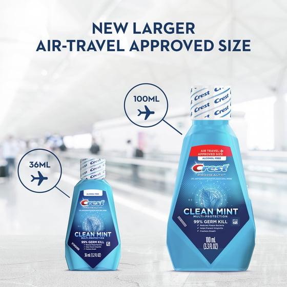 - You will receive (1) 100mL (3.3 Fl Oz) Travel Size bottle of Crest Pro-Health Multi-Protection mouthwash in Clean Mint flavor