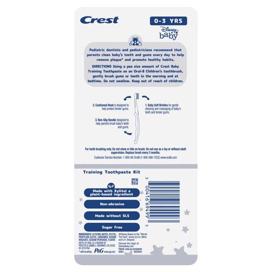 - Includes one 1.6 oz Crest Training Toothpaste, Mild Strawberry Gel, and one Oral-B Training Toothbrush featuring Disney's Winnie the Pooh