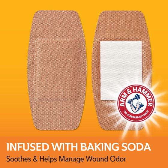 - HELPS REDUCE ODOR: Each bandage is infused with ARM & HAMMER™ which has natural soothing properties. It provides soothing relief to minor cuts and even insect stings. It also helps neutralize and reduce odor.
