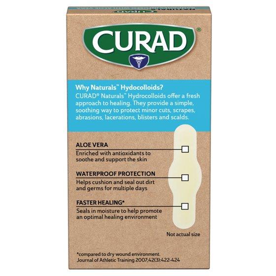 - CURAD Naturals Hydrocolloids with Aloe Vera and are a great addition to your first aid kit. Each box contains 8 sterile bandages for minor cuts, scrapes and blisters.