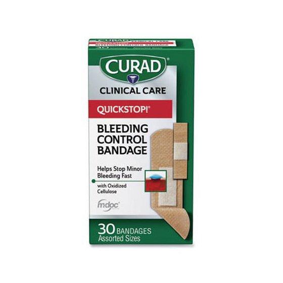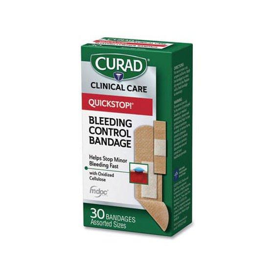 Curad Quickstop Instant Clotting Technology Flex-Fabric Bandages, Assorted, 30 Count