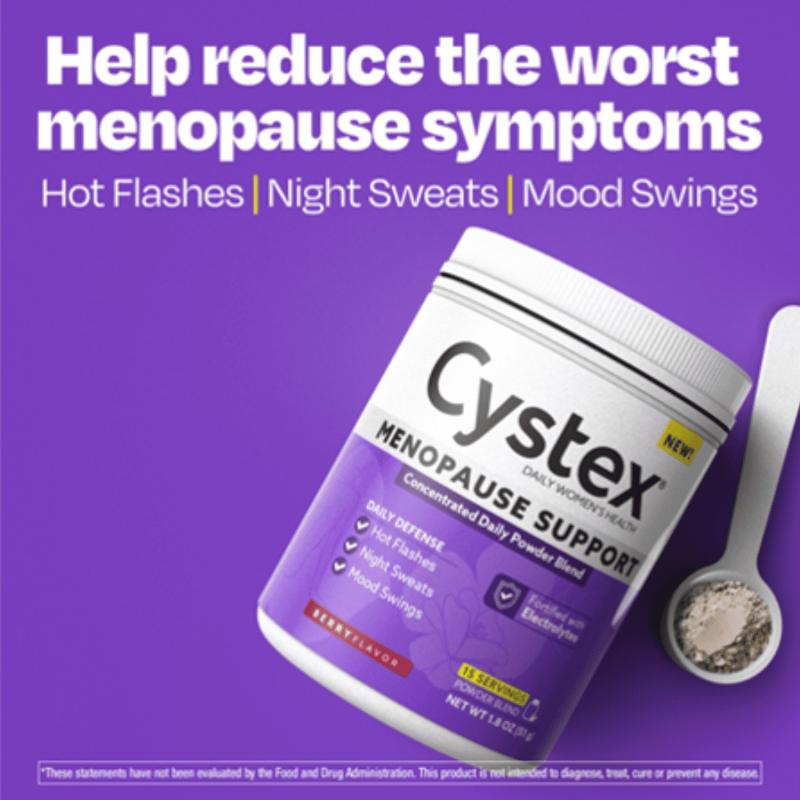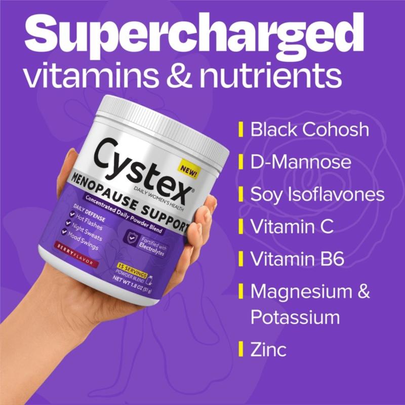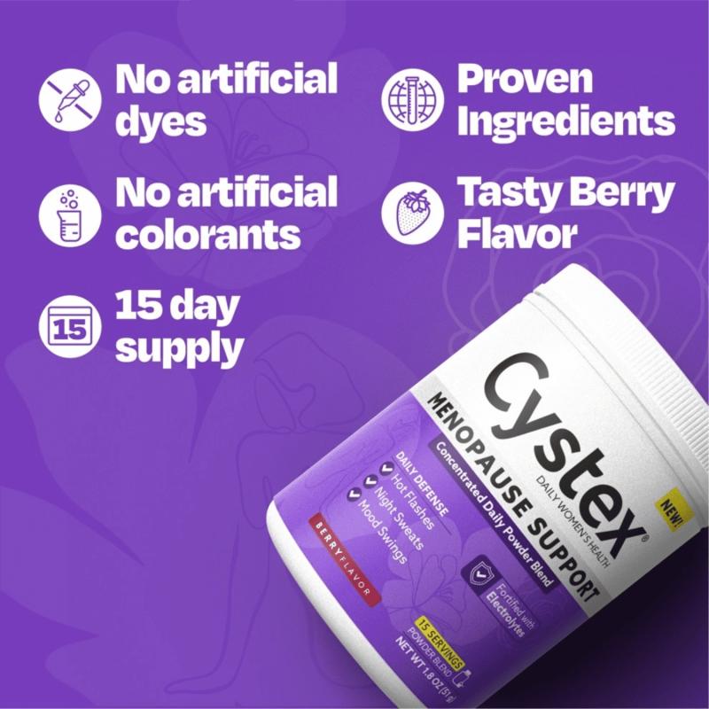 - Cystex Daily Menopause Support: 15-day supply designed to help manage menopause symptoms with just one scoop per day.