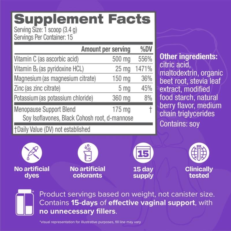 - Electrolyte-Enhanced: Boosts hydration to support vaginal health and ease menopause symptoms. Proper hydration with essential electrolytes helps maintain moisture, reduce dryness, and support hormonal balance for enhanced comfort and well-being.