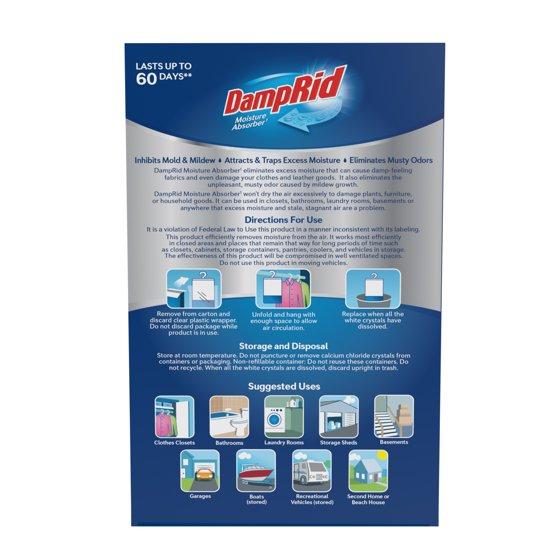 - DampRid Fragrance Free Hanging Moisture Absorber attracts and traps excess moisture from the air, eliminating musty odors and inhibiting mold and mildew.