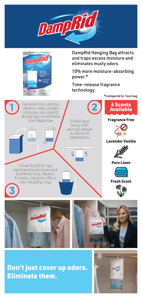 - 10% MORE MOISTURE ABSORBING POWER: Now with 10% more moisture absorbing power*, DampRid lasts even longer. *Compared to 14-ounce bag.