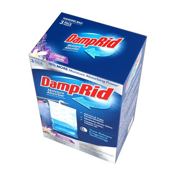 - ATTRACTS AND TRAPS EXCESS MOISTURE: DampRid Lavender Vanilla Hanging Moisture Absorber attracts and traps excess moisture from the air, eliminating musty odors and creating fresher, cleaner air.