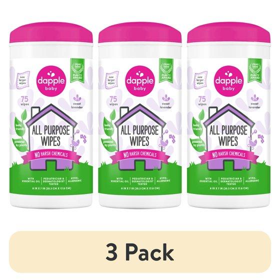 (3 pack) Dapple Baby All-Purpose Cleaning Wipes with Lavender Scent - 75 Plant-Based Wipes