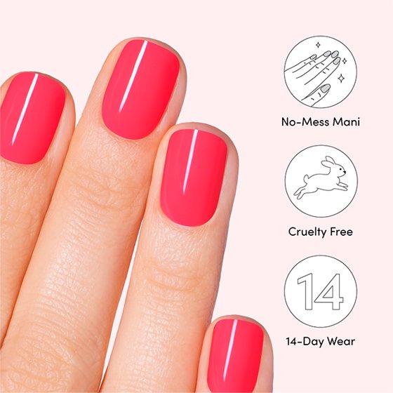 - Cures in 60 seconds under LED light and lasts up to 14 days