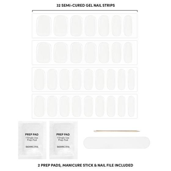 Dashing Diva GLAZE, Starter Kit, Semi-Cured Gel Nail Polish Strips, Clear, Includes 32 Strips and LED Lamp