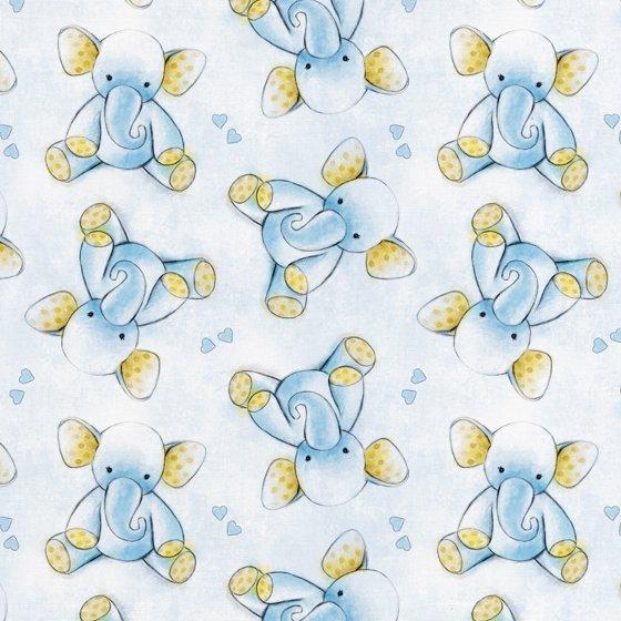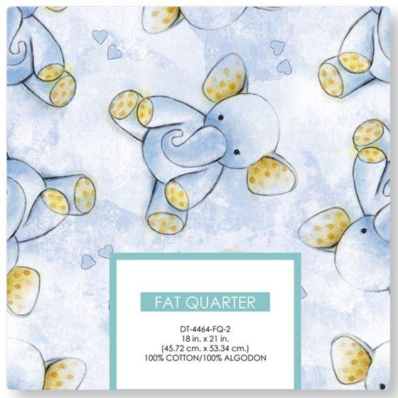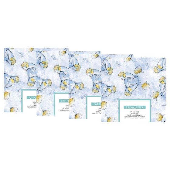 (4 pack) David Textiles 21" x 18" 100% Cotton Sleepytime Elephants Precut Sewing & Craft Fabric, Blue