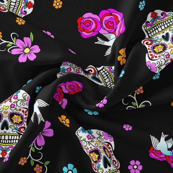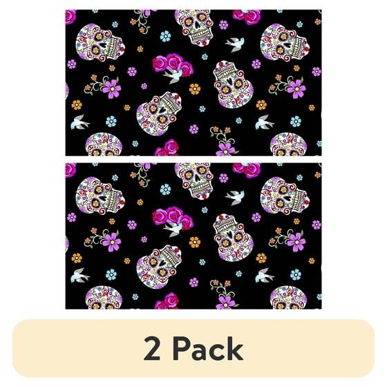 (2 pack) David Textiles 44" x 1 Yard Cotton Day of the Dead w/glitter Precut Fabric, Black
