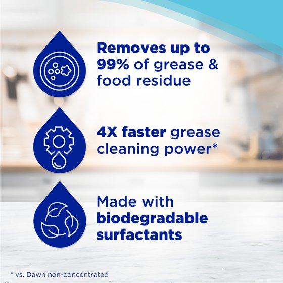 - 4X Faster Grease Cleaning Power (vs. Dawn non-concentrated dishwashing liquid)