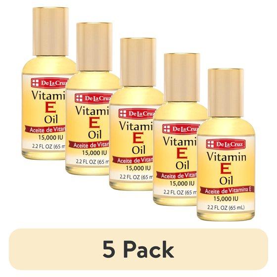 (5 pack) De La Cruz Vitamin E Oil, with Safflower for Skin, Hair, Face and Body, 15,000 IU, 2.2 FL oz