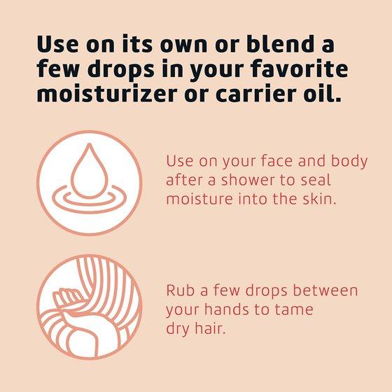 r It is light, non-greasy oil and absorbs quickly. Use on its own or blend a few drops in your favorite moisturizer or carrier oil. Safe for all skin types.