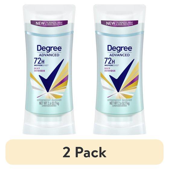 Degree Women Sexy Intrigue MotionSense Antiperspirant Deodorant, 2.6 oz. Freshen up and move with confidence with Degree Advanced Sexy Intrigue Antiperspirant Deodorant for women. This antiperspirant for women features 72-hour sweat and odor protection and a heady scent of jasmine, red rose, Tahitian vanilla, and spicy amber. Only Degree has Body Heat Activated® technology that moves in sync with your body. This antiperspirant deodorant releases a burst of subtle fragrance every time you move for nonstop protection. Degree Advanced Sexy Intrigue antiperspirant deodorant keeps you feeling fresher, drier, and more confident. This powerful antiperspirant deodorant responds when you need it most so that you can stay confident without having to worry about slowing down. Simply swipe and start moving. This antiperspirant deodorant for women with a tantalizing scent gives you the confidence to keep moving all day long. Degree Advanced Sexy Intrigue Antiperspirant Deodorant keeps you feeling cool, fresh and protected from sweat and odor. Degree gives you the confidence to keep moving, however you move. Sexy Intrigue also comes in an antiperspirant deodorant dry spray. At Degree, we’re doing everything we can to help keep the planet moving. That’s why we're increasing our use of reusable materials, making it easier for you to recycle our antiperspirant and dry spray packaging. Whatever you do, however you do it, Degree wants to help inspire the confidence in you to move more, and with this antiperspirant deodorant, it’ll provide you the confidence that sweat and odor will not get in your way of your progress. Degree. It won’t let you down.