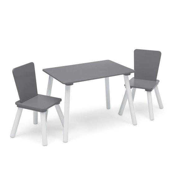 Complete your child’s playroom or bedroom with this 4-Piece Toddler Playroom Set by Delta Children. Vibrant and playful, this set includes a wooden play table with dry erase tabletop, two coordinating chairs and a toy organizer. Also included in this set, a set of reusable vinyl cling stickers that kids will love arranging to the sides of the toy organizer to create a new story every time they play. All items are at the perfect kid-sized height to help teach your little one responsibility and independence as they play, eat and clean up on their own. The adorable two-tone design ensures your little one’s playroom is a stylish and charming as the rest of your home. Ideal for both boys and girls, this kids’ playroom set comes in two colors, Grey/White and Pink/White. Get it today--the play possibilities are endless with this versatile set! Recommended for ages 3+.