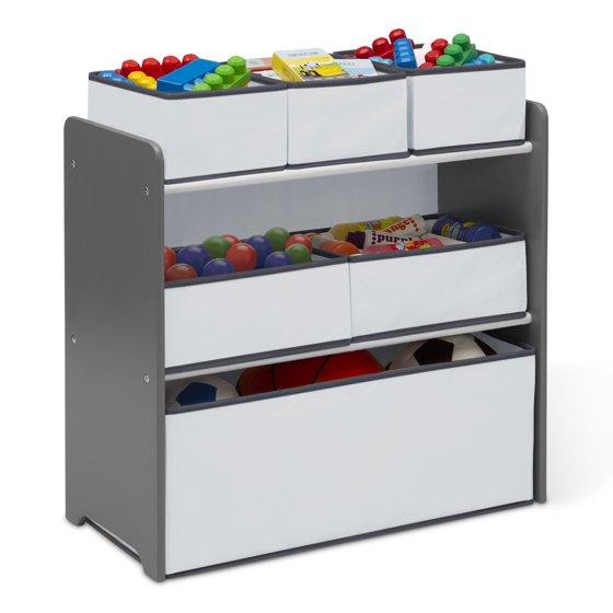 - Toy Organizer features 6 bins in varying sizes to fit a wide variety of toys