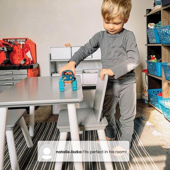 Delta Children 4-Piece Toddler Playroom Set – Includes Play Table with Dry Erase Tabletop and 6 Bin Toy Organizer with Reusable Vinyl Cling Stickers, Grey/White