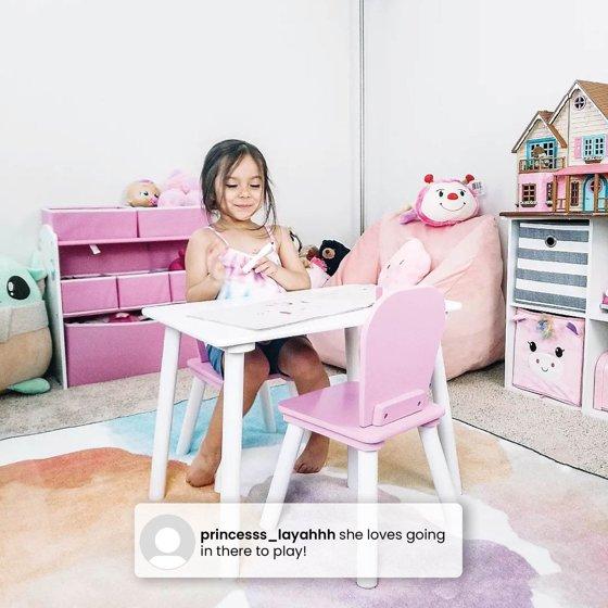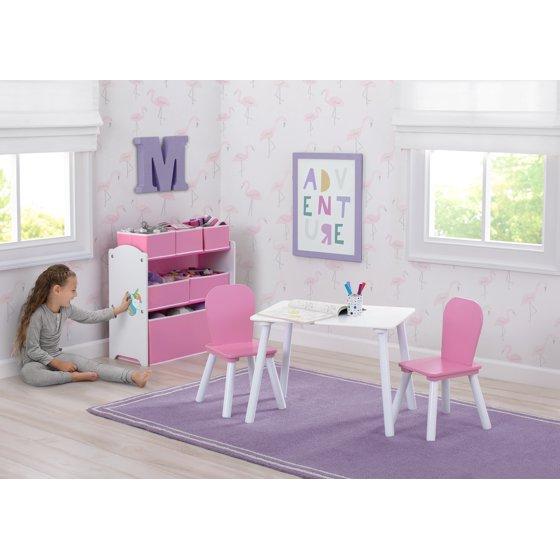 Delta Children 4-Piece Toddler Playroom Set – Includes Play Table and Toy Organizer, Pink/White