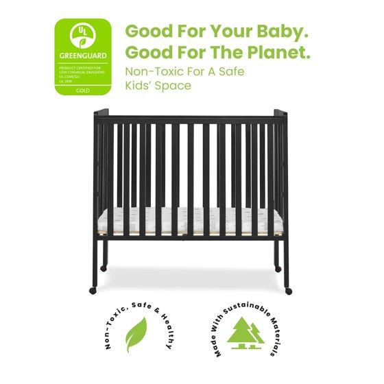 Designed for modern families, the Lee Portable Folding Mini Crib with 1.5-Inch Mattress by Delta Children is great for small spaces, shared bedrooms or overnight trips. Its small footprint and wheels allow for easy movement throughout the home. A great alternative to a bassinet, its two-position mattress support prolongs the life of the crib—start at the higher position and lower as your child begins to sit or stand. The included 1.5-inch waterproof mattress adds a layer of comfort while the easy-fold construction makes storage or transport super simple. Crafted from sustainable woods, the Lee Portable Folding Mini Crib is a durable and versatile addition to any modern nursery. Plus, it’s GREENGUARD Gold Certified, which means it’s built to contribute to cleaner air for a healthy home.
