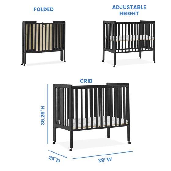 - PORTABLE FOLDING CRIB: Small footprint is great for small spaces, shared bedrooms or overnight trips | Crib easily folds up for storage or transport| Crib includes 4 wheels for easy movement around the house
