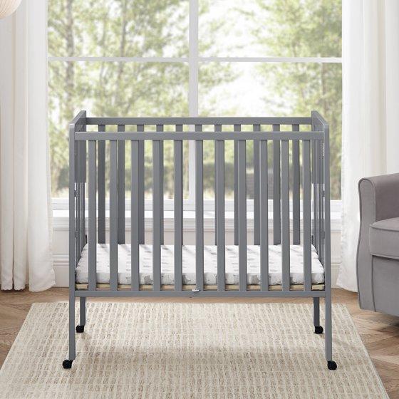 Designed for modern families, the Lee Portable Folding Mini Crib with 1.5-Inch Mattress by Delta Children is great for small spaces, shared bedrooms or overnight trips. Its small footprint and wheels allow for easy movement throughout the home. A great alternative to a bassinet, its two-position mattress support prolongs the life of the crib—start at the higher position and lower as your child begins to sit or stand. The included 1.5-inch waterproof mattress adds a layer of comfort while the easy-fold construction makes storage or transport super simple. Crafted from sustainable woods, the Lee Portable Folding Mini Crib is a durable and versatile addition to any modern nursery. Plus, it’s GREENGUARD Gold Certified, which means it’s built to contribute to cleaner air for a healthy home.