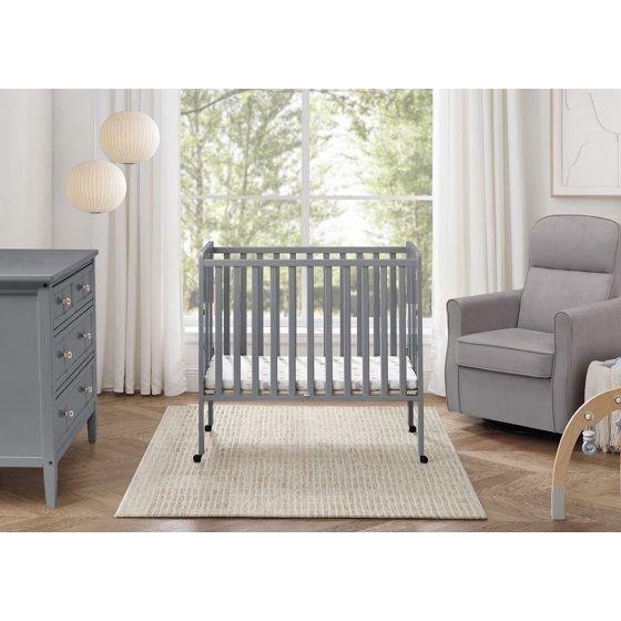 Delta Children Lee Portable Folding Mini Crib with 1.5-Inch Mattress - Greenguard Gold Certified, Grey