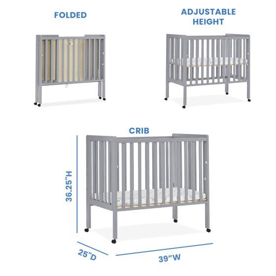- PORTABLE FOLDING CRIB: Small footprint is great for small spaces, shared bedrooms or overnight trips | Crib easily folds up for storage or transport| Crib includes 4 wheels for easy movement around the house