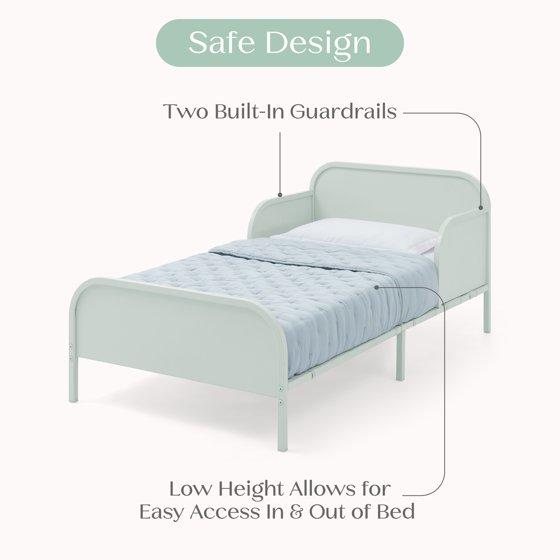 - SAFE OPTION: Low to the ground design provides easy access for your child | Bed features two attached guardrails to keep your child safe