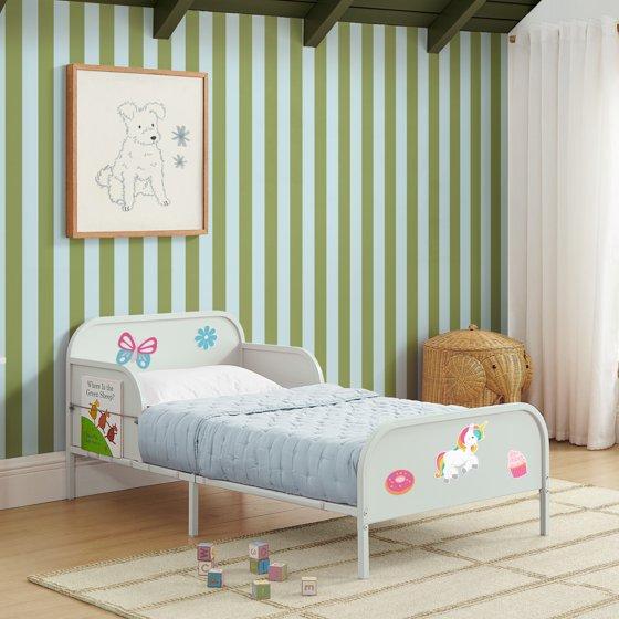 - MAGNETIC HEADBOARD AND FOOTBOARD: This metal toddler bed includes two sheets of magnets that can be applied to the headboard or footboard, allowing for creative play and easy customization of the bed’s look | Magnets can be personalized using a permanent marker