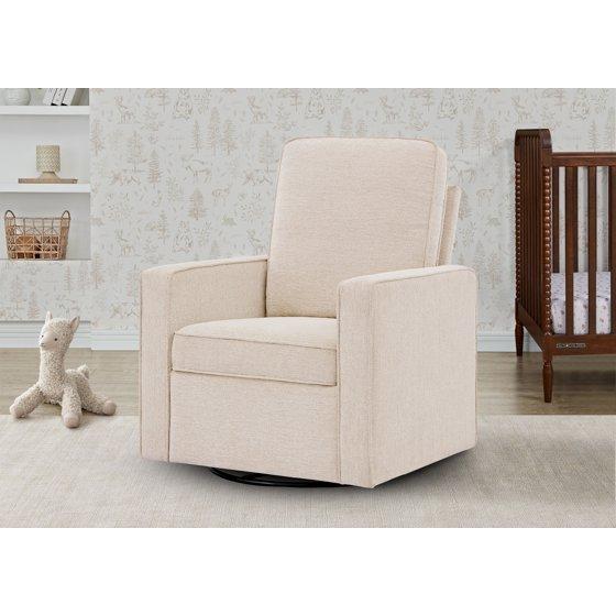 Delta Children Noah Upholstered Swivel Glider with Stain-Resistant Performance Fabric- Greenguard Gold Certified, Almond