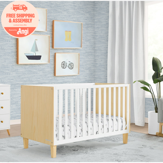 Delta Children Sonny 4-in-1 Convertible Baby Crib, Natural/Bianca White