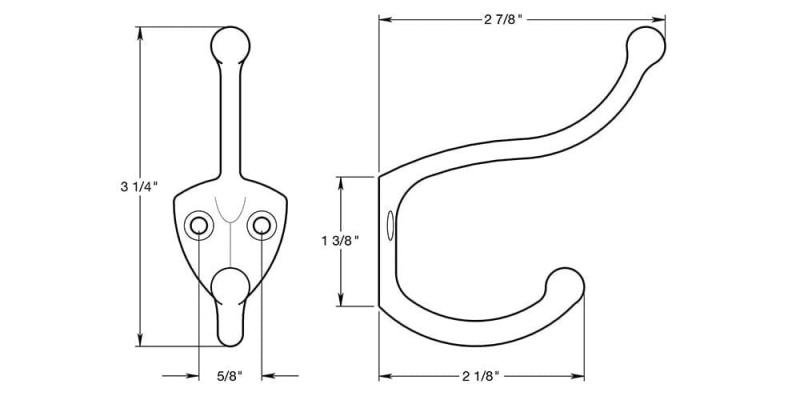 Deltana CAHH3U3-UNL Coat & Hat Hook, Unlacquered Bright Brass - Solid Brass