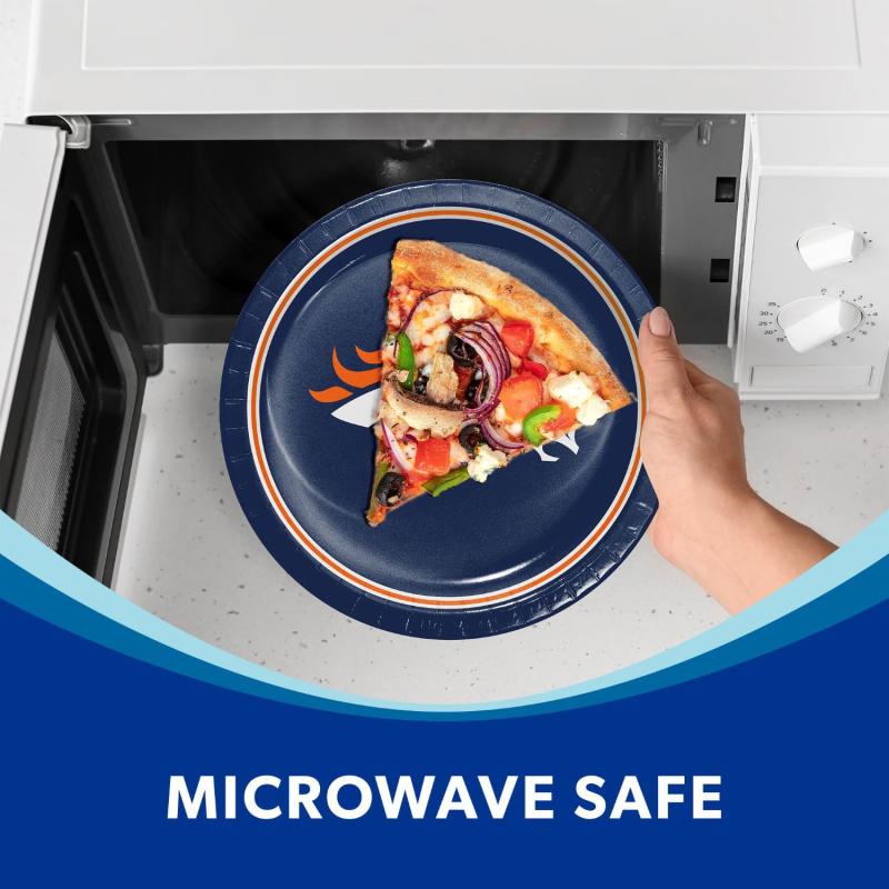 Football season is approaching so make sure you're fully stocked and ready for guests. These NFL 10" paper plates are microwave safe, if you want to reheat your food later on. The 85 count paper plates make cleanup easy whether you're hosting a party at home or tailgating with friends—simply use them and toss them in the trash when finished.