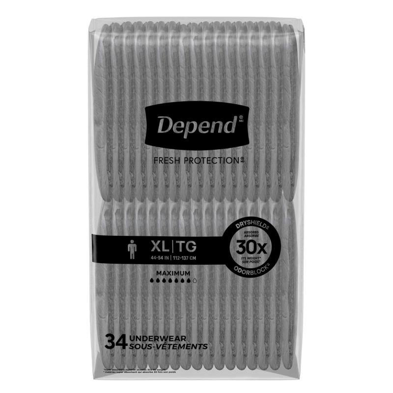 - DEPEND FRESH PROTECTION: 26 count of Depend Fresh Protection Incontinence Underwear for Men, size extra-large (44–54" waist)