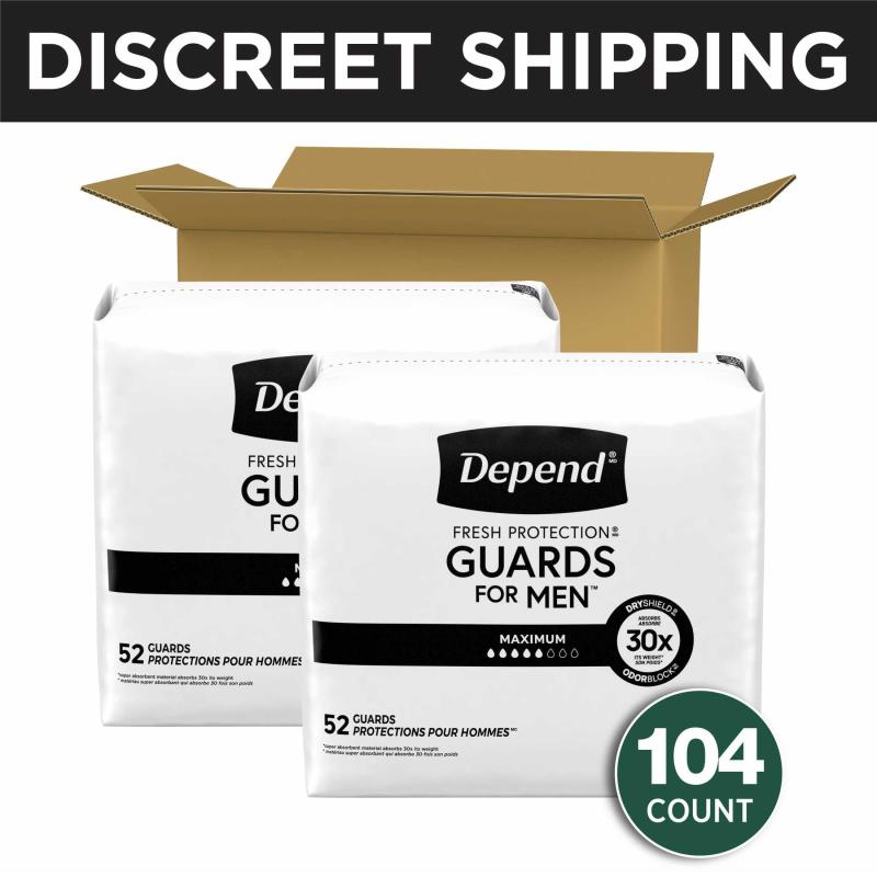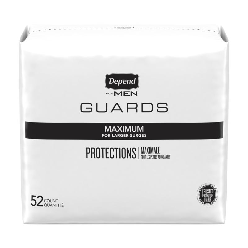 - DEPEND GUARDS: 52 count of Depend Incontinence Guards for Men, maximum absorbency