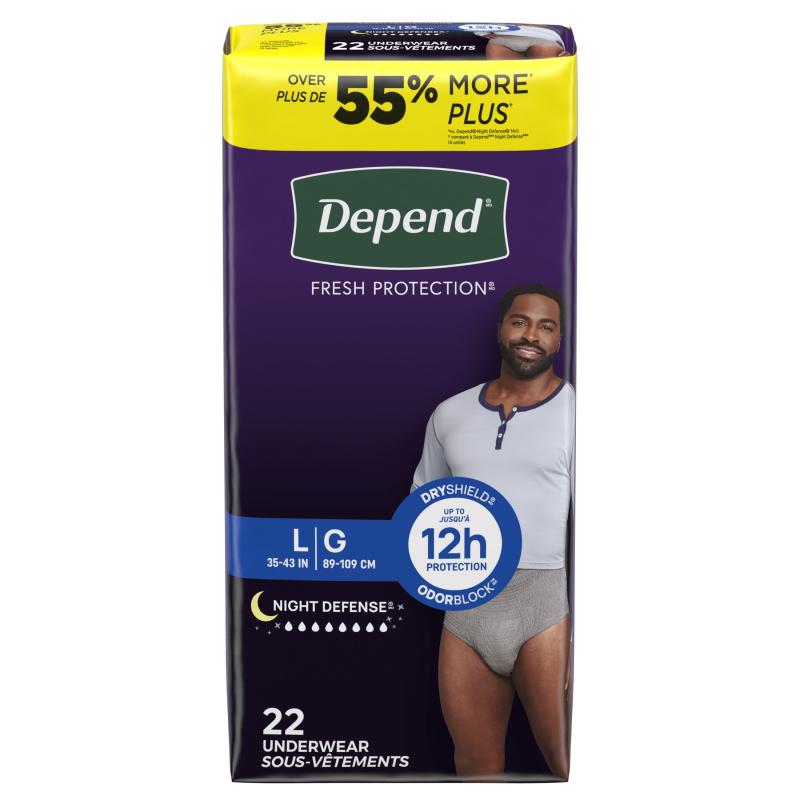 Depend Night Defense Incontinence Underwear for Men, Adult Diapers, L, 22 Count