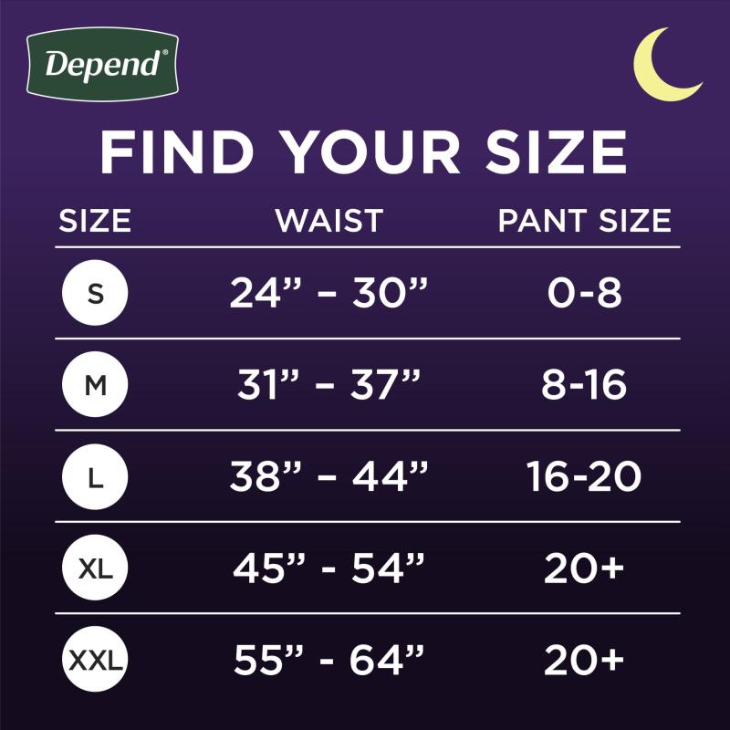 - DEPEND NIGHT DEFENSE: 15 count of Depend Night Defense Incontinence Underwear for Women, size medium (31–37" waist)